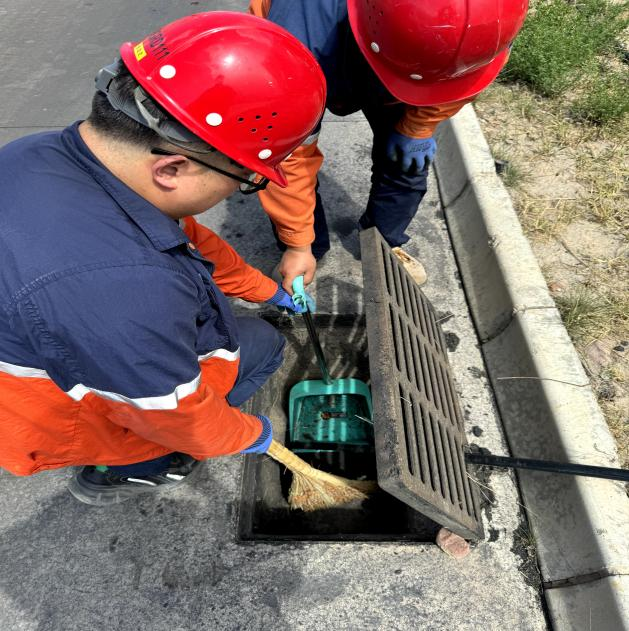 雨水井里,淤泥、落葉、雜物層層堆積,腐臭味撲面而來(lái)。但技術(shù)裝備部的師傅們沒(méi)有半分猶豫:套上勞保服、踩進(jìn)泥濘中,鐵鍬揮得有力,污泥濺了滿身也顧不上擦;遇到纏成一團(tuán)的堵塞物,干脆徒手清理,污水順著指尖流、泥漬沾滿袖口,大家只笑著說(shuō)“早點(diǎn)通了心里才踏實(shí)”。汗水混著雨水浸透衣衫,卻擋不住他們搶時(shí)間、保暢通的腳步。